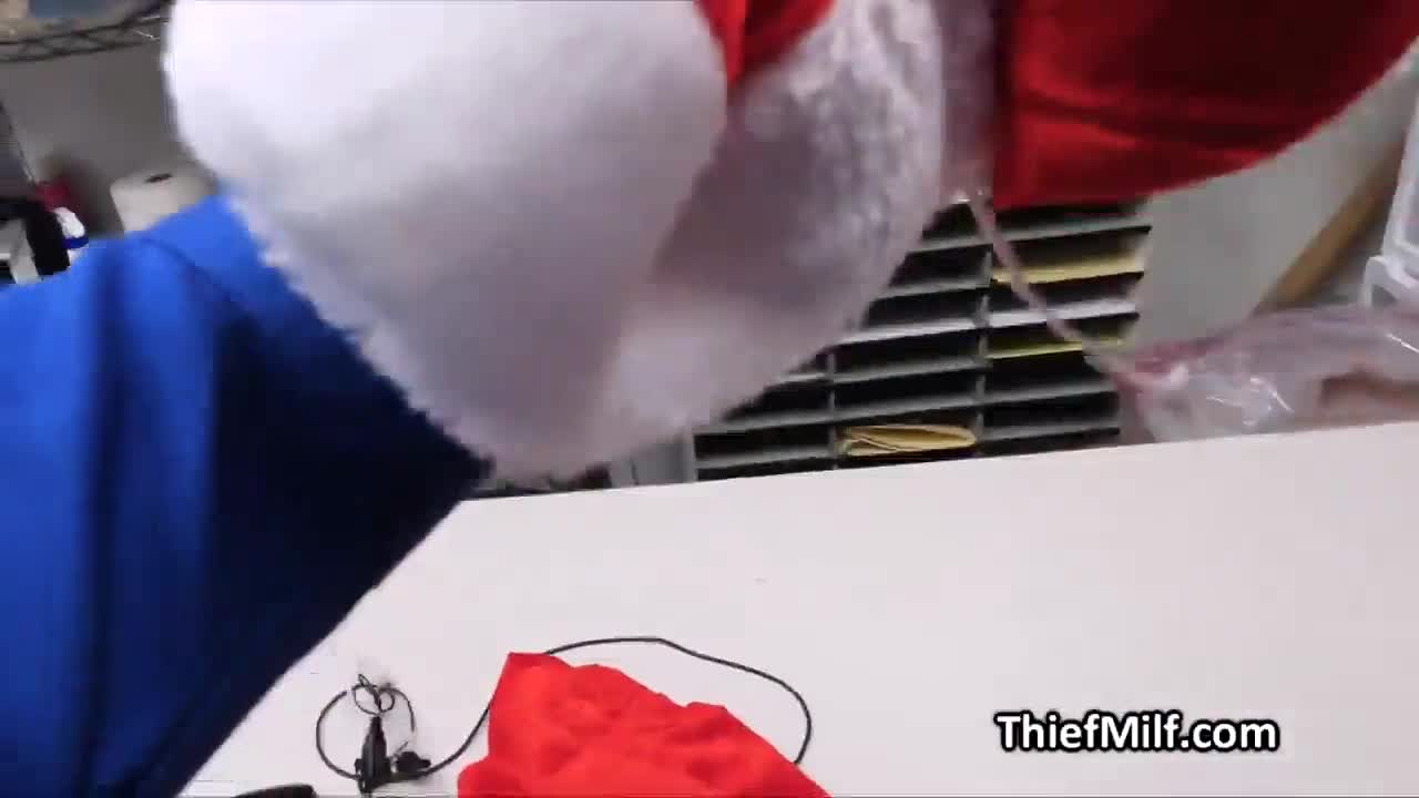 Hammering that busty thief milf in her fishnet bodysuit at the office