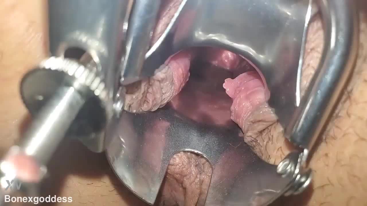 Gynecological dilator stretches milf's hairy cunt. Mature lesbians lick and gape wide vaginas at home.