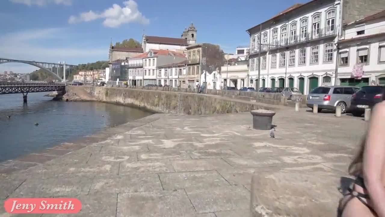 Jeny Smith in public strap bondage with heels and shoes